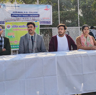 जिसमें विद्यार्थी परिषद के सुशील शर्मा , केशव पारीक जयपुर महानगर से राष्ट्रीय कला मंच संयोजक पूजा गोस्वामी एवं सौरव बदोतिया अभिषेक जांगिड़ व अग्रवाल पीजी कॉलेज के प्रधानाध्यापक डॉ. प्रद्युम्न सिंह राठौड़ डॉ.माया कटारिया डॉ. नीतू अग्रवाल डॉ. जिनिता मिर्जा आदि सभी उपस्थित रहे ।