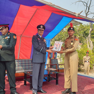 जिसमें मुख्य अतिथि के रूप में एयर कमोडोर सत्येंद्र शर्मा डिप्टी डायरेक्टर जनरल एन सी सी निदेशालय राजस्थान और विशिष्ट अतिथि कर्नल नितिन सहरावत निदेशक राजस्थान निदेशालय इन प्रतिभाओं को सम्मानित कर इनका हौसला अफजाई की