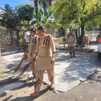 सफाई के औजार साथ लेकर पहुंचे अनुयायी